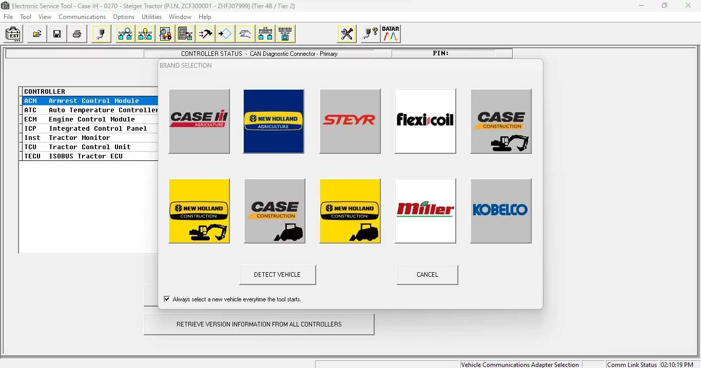 Gelişmiş veri kümesi kaydı ve araçlar için birçok gizli seçenek programlaması ve ham mesaj simülasyonları için CNH EST 9.7 güncellemesi 4 kontrol cihazı 95.