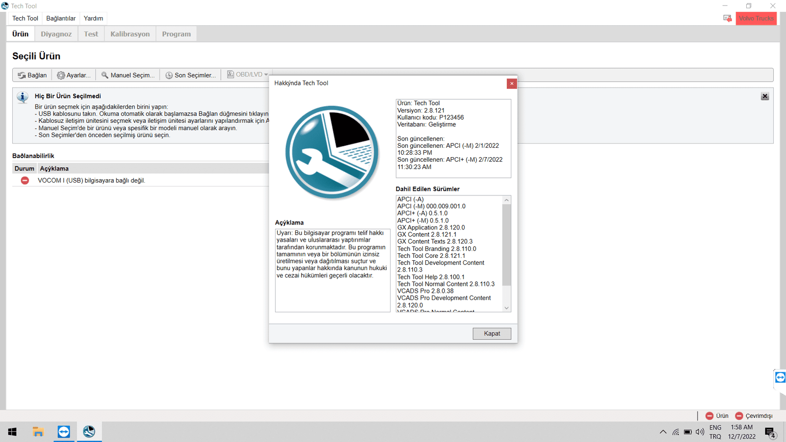 VOLVO PREMIUM TECH TOOL yazılımı, volvo kamyon ve otobüsleri, volvo inşaat ekipmanlarını, volvo penta, mack kamyonları, renault kamyonları, ud kamyonlarını teşhis etmek ve programlamak için tasarlanmıştır. teknoloji aracı, vocom i, vocom ii teşhis tarayıcıları aracılığıyla aracın kontrol ünitesiyle veri akışları alışverişinde bulunur.